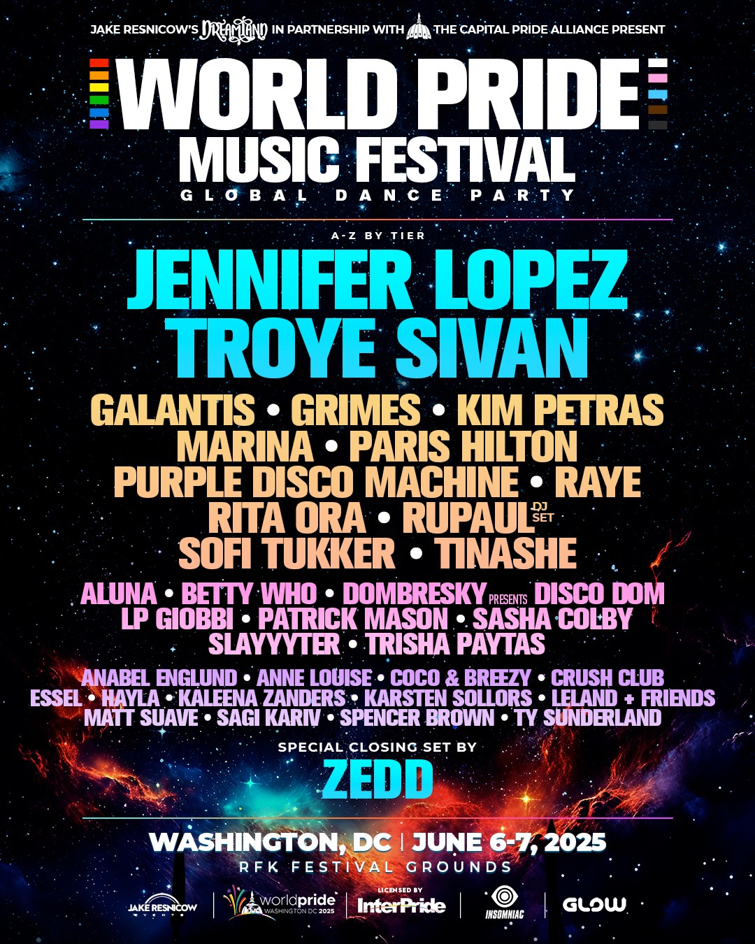 “WorldPride Music Festival is a moment the world will remember. With legendary artists and our global community coming together, we’re creating an electrifying celebration that unites, uplifts, and amplifies LGBTQ+ voices like never before. Hosting this festival in our nation’s capital makes it even more powerful—it’s not just a party, it’s a global movement.” – Jake Resnicow, the festival’s executive producer and one of OUT100’s Most Influential LGBTQ People of the Year.