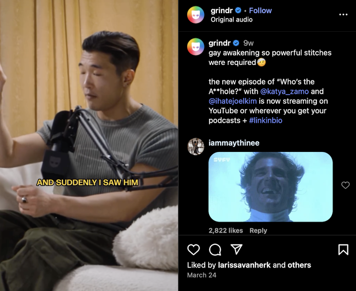 Dropping by Grindr’s delightfully chaotic podcast “Who’s the A**hole?” with the inimitable @katya_zamo, Joel opened up about everything from love to logic — and dished out a cheeky tale that might just win the award for most dramatic gay awakening of all time.