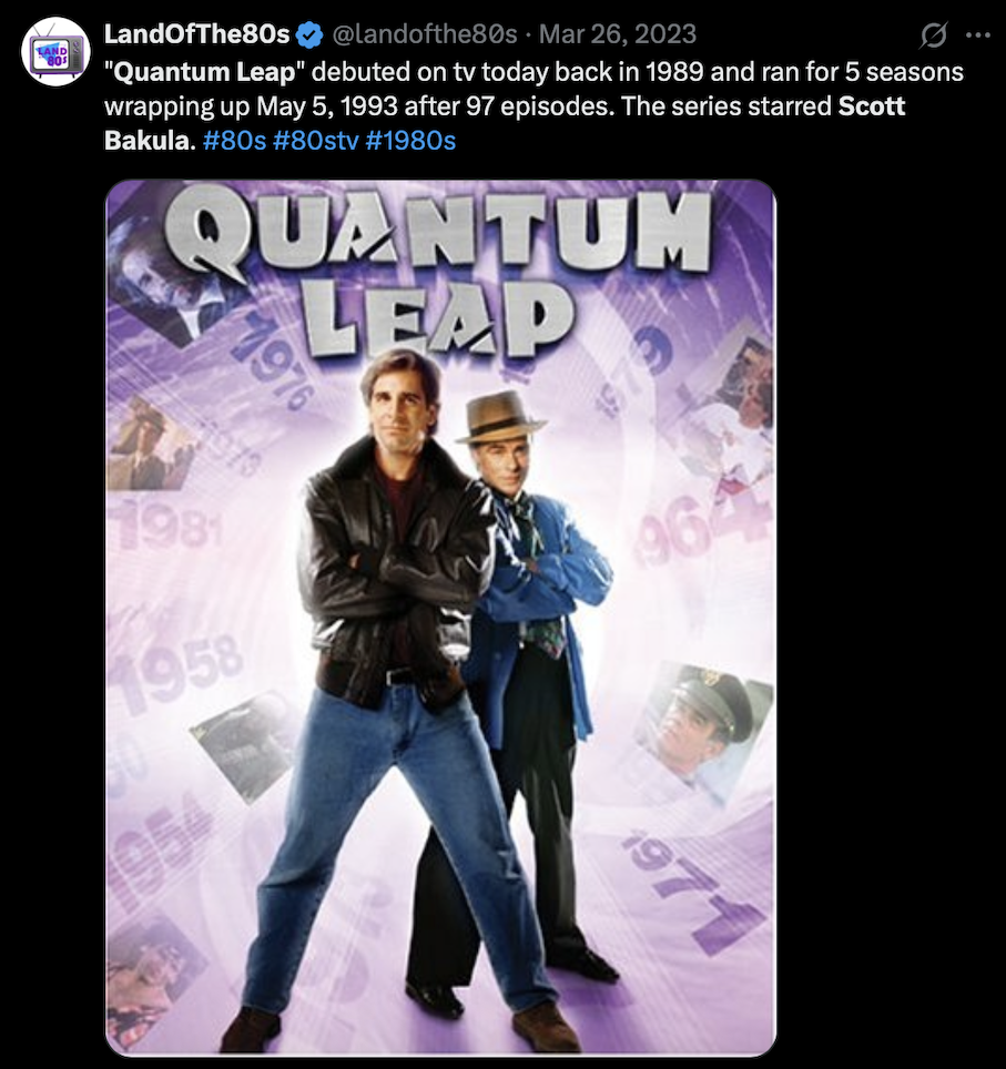 He described watching Quantum Leap, minding his own gay business on a quiet day, when suddenly… Scott Bakula appeared in the opening credits in a swirl of blue, smoky fabulousness. And just like that, the universe said “It’s time.” Joel, overcome by the sheer force of Bakula’s sci-fi charisma, launched himself across the living room — couch to couch, dramatic leap included — and promptly gashed his head on the coffee table. Like, needed stitches kind of gash.