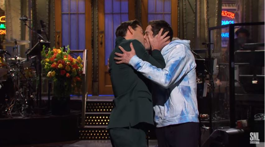 Somehow John Krasinski‘s Saturday Night Live opening monologue led to him and Pete Davidson passionately kissing. Not that we’re complaining.