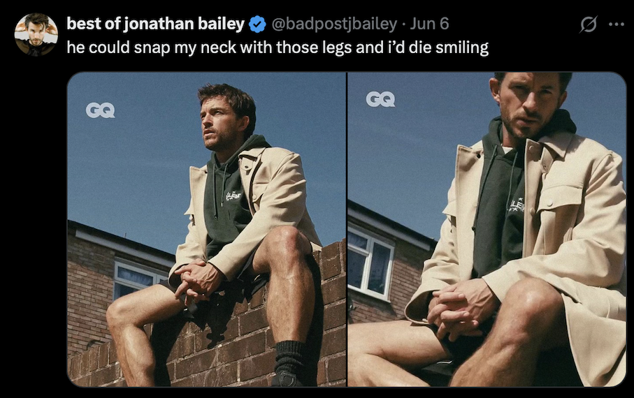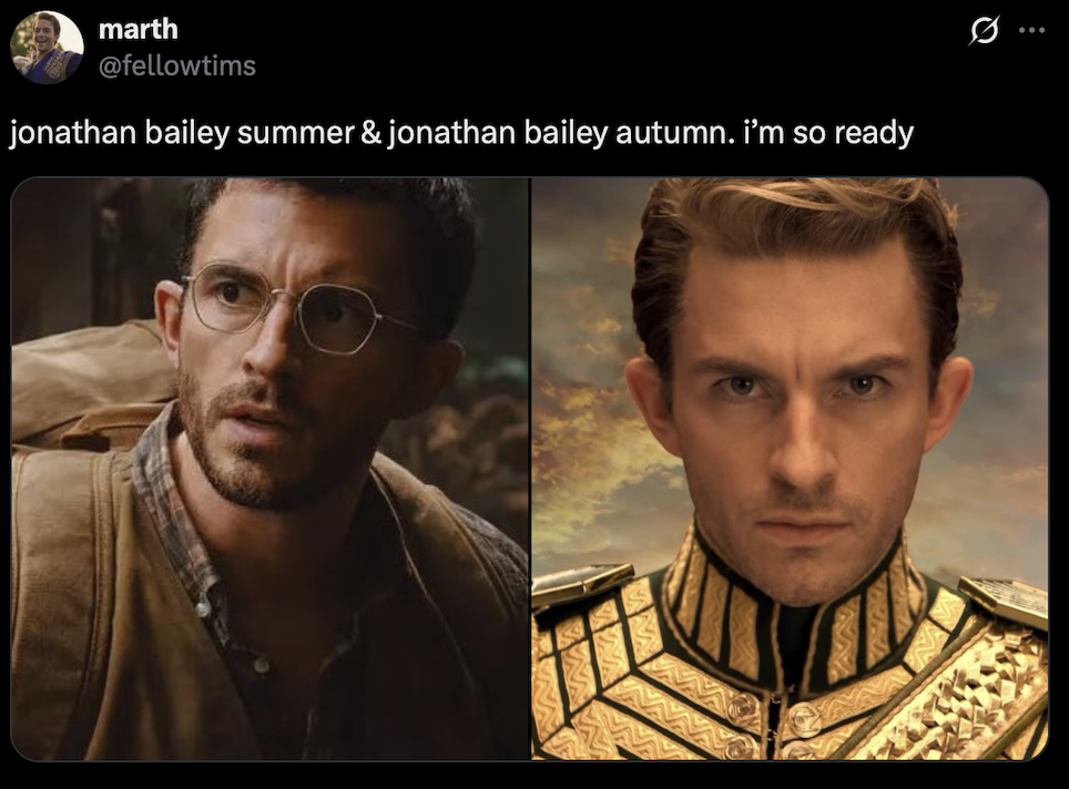 Whether he’s fighting the lavender scare in Fellow Travelers, belting in Wicked, or running from genetically modified lizards in short shorts (or at least in that photoshoot), Jonathan Bailey continues to live his best, most versatile life—and we’re lucky enough to be along for the ride.
