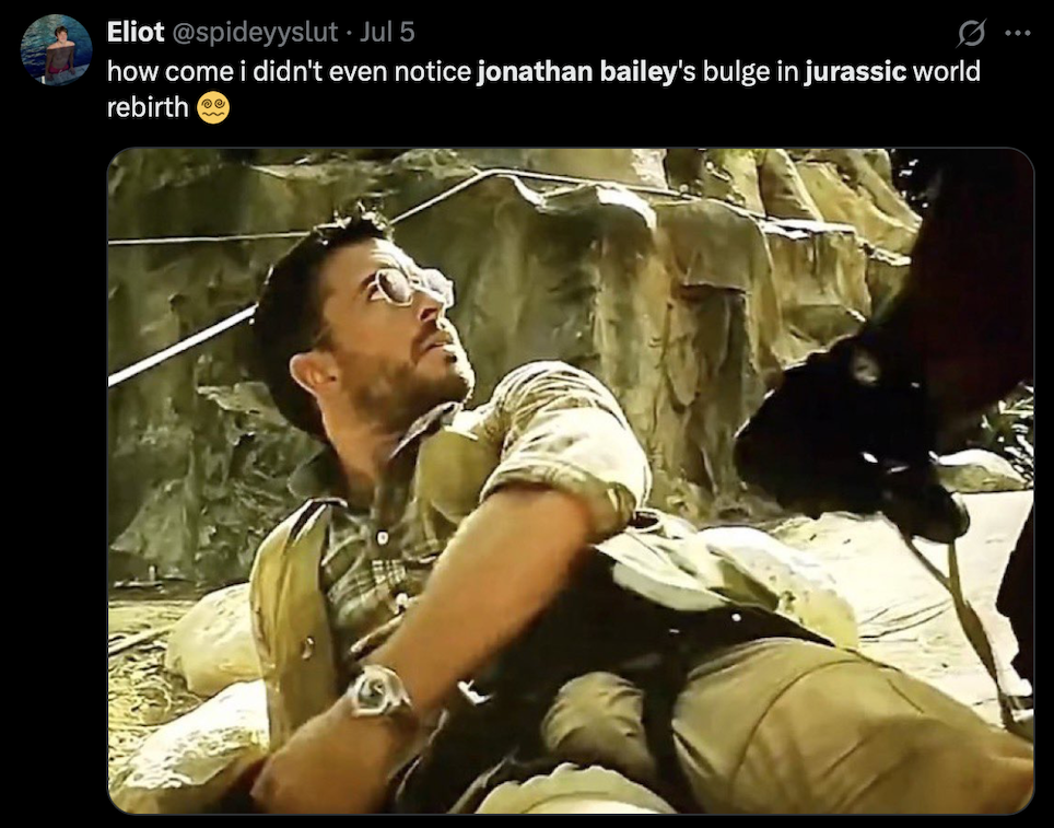 - “im watching jurassic world rebirth on monday, if the movie is shit at least ill see jonathan bailey’s bulge on a big screen”