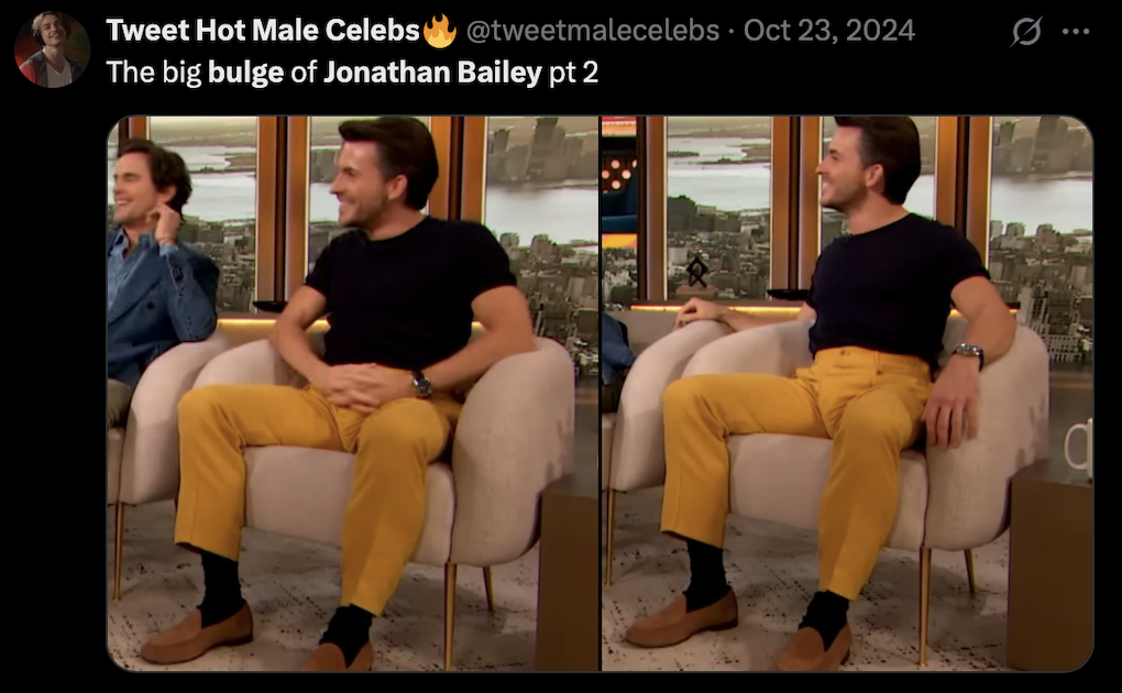 Twitter, X, Threads—pick your platform, and it’s buzzing with one very specific observation: Jonathan Bailey’s bulge. Or as one user lovingly put it, “the elephant in the room.”