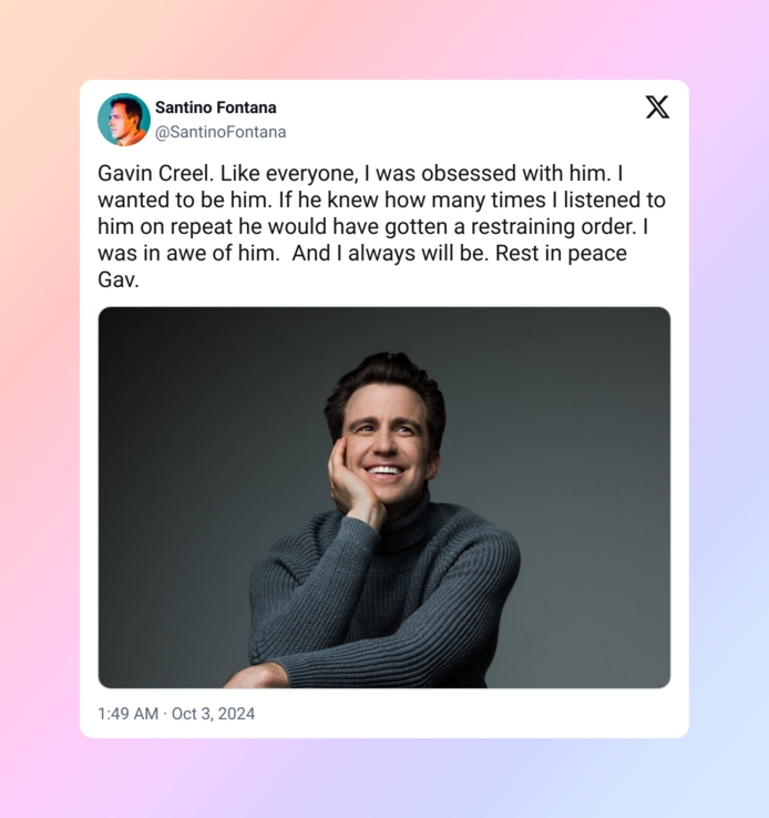 Tragically, Gavin Creel passed away in September 2024 at the age of 48, following a battle with sarcoma. It’s a heartbreaking coda to a love that helped shape Groff’s life.