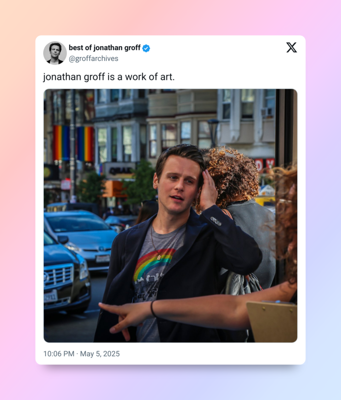 Let’s be honest: most of us know Jonathan Groff as the sweet-faced heartthrob who could sing your house down and still be home in time for tea. Whether he was melting hearts on Glee, making you cry in Looking, or collecting Tonys like Pokémon cards (Merrily We Roll Along, anyone?), Groff has long been beloved by the gays—not just for his talent, but for his sincerity.