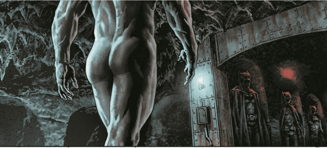 For ages, comics have depicted female characters in gratuitously sexy outfits, poses—and often just pure gratuitous nakedness. The decision to take Batman down this road was a bold one by Azzarello and Bermejo, and so far the response has been purely positive. Many are saying this is the first time a DC or Marvel hero has gone full frontal.