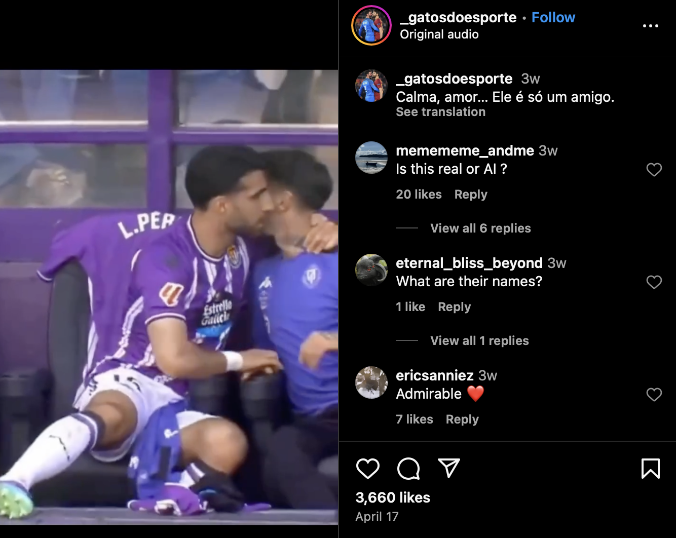 Here’s where it gets even better. The viral clip doing the rounds — which looks like a cleverly AI-edited scene straight out of a steamy sports romance — is actually based on a real incident that happened in a LaLiga match between Real Valladolid and Getafe on Sunday.