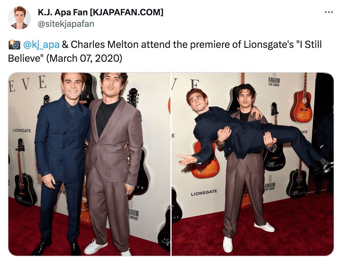 i’m in tears. oscar hopeful charles melton and kj apa watching a 1950s gay wrestling video. pic.twitter.com/USbnhRdWcT