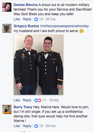 The American Military Partner Association has a presence on Facebook that deserves to be liked and followed. This week, they took to posting pictures of US Military members and their spouses in honor of #MilitarySpouseAppreciationDay!