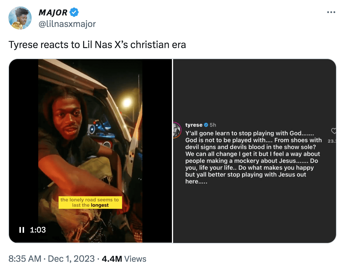 Thereafter, people shared their sentiments regarding Lil Nas X’s motive behind posting the video. One of the people who accused him of “mocking Christianity” is ‘Fast and Furious’ actor Tyrese Gibson.
