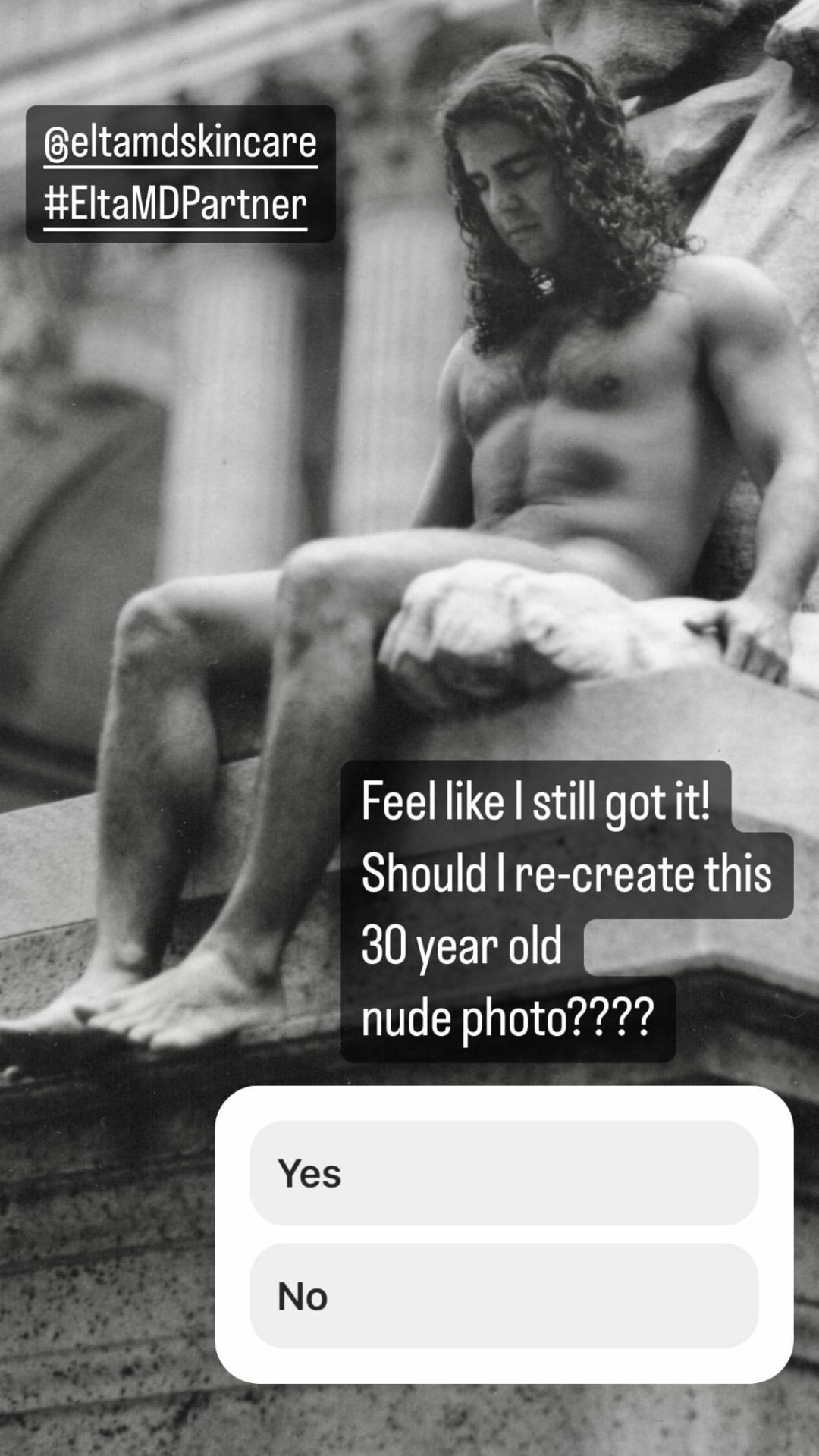 “Feel like I’ve still got it! Should I re-create this 30 year old nude photo????”