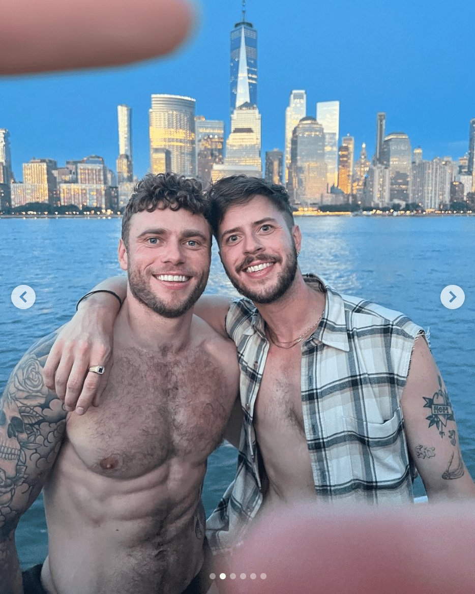 Not to mention, it looks like Pride in NYC was too hot and sweaty for the 31-year-old Olympic medalist based on his shirtless state in the photos and video that he posted on Instagram. The video shows him walking shirtless along the busy streets of New York.