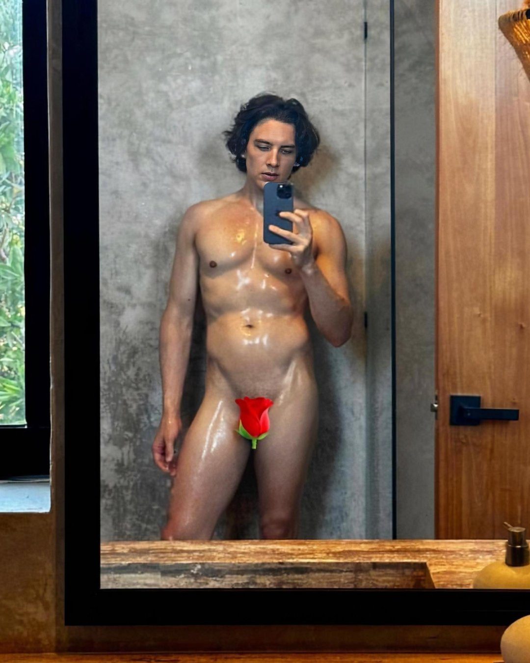In the photo, the 34-year-old Australian actor and director took a mirror selfie of him wearing absolutely nothing, with his skin glistening under the light. He posted the sensual pic by covering his private part with a rose emoji that leaves very little to the imagination. 😉