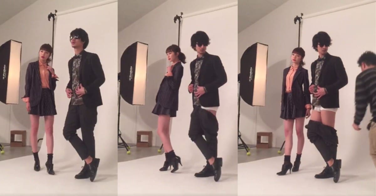 @mubiki3939 tweeted out this cute little wardrobe malfunction captured during a Japanese photo shoot.