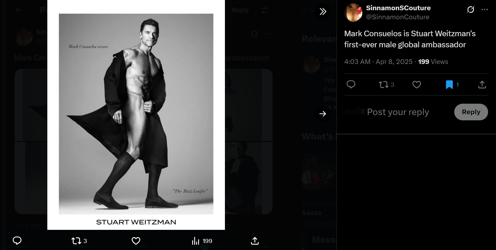 In one photo, Consuelos sports nothing but a dark trench coat, knee-high socks, and loafers, leaving us to question if we came for the shoes — or the view. As he puts it, “I love my Stuart Weitzman shoes… I look and feel my best in them, and I think this really shows.” And honestly, it shows. If loafers can make a man look that good, we’re all in for the ride.