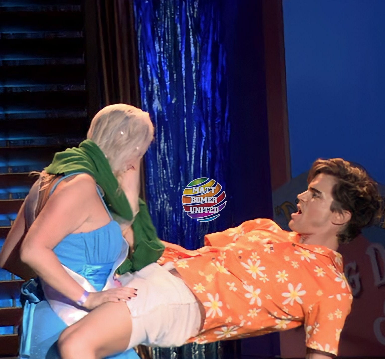 But thanks to the magic of capitalism and the cries of thirsty fans, the powers that be blessed us with this deleted masterpiece in the DVD extras. Did they do it for the art? Probably not. Did we care? Absolutely not. Because once you watch Bomer, in his sparkling suit and even more sparkling smile, deliver the performance of the century, you’ll understand that sometimes marketing strategies do align with divine intervention.