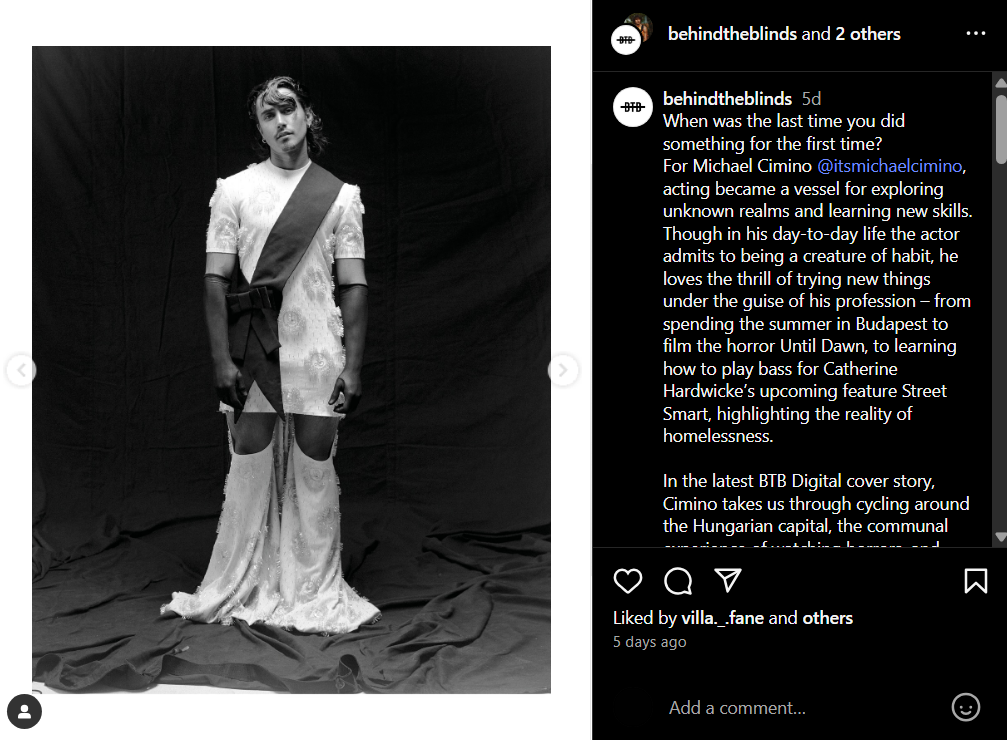 And if his on-screen glow isn’t enough, Cimino recently dialed things up in a jaw-dropping photoshoot for Behind The Blinds. Draped in high fashion and exuding pure confidence, the editorial makes one thing clear: Cimino doesn’t just play a heartthrob—he is one. The shoot, all sharp silhouettes and sensual stares, further cements his status as both a style icon and a full-on visual obsession. If Motorheads is the teaser, that photoshoot is the cinematic universe.