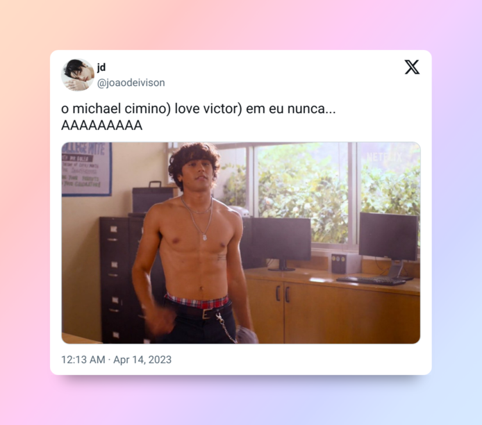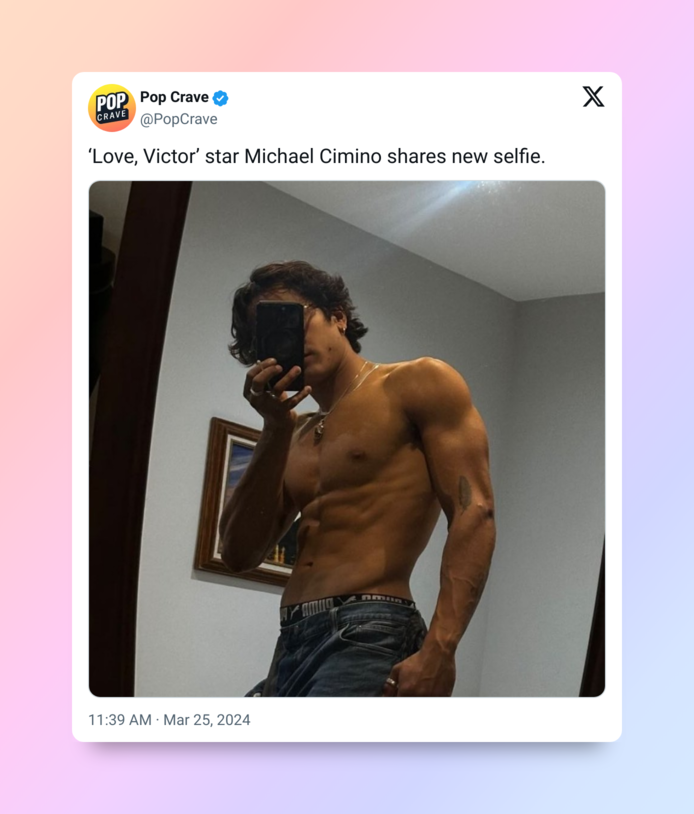 This isn’t new territory for Cimino, who first captured hearts as the lovable lead in Love, Victor. Back then, he played a layered, emotionally complex queer teen navigating identity and love. Now, he’s grown into something slicker, sexier, and a little more dangerous—but still just as compelling. The boy-next-door has officially taken his shirt off, and we are not looking away.