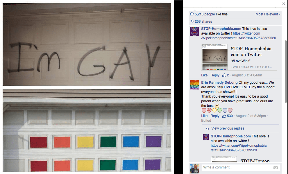 In an interview with the Huffington Post, Erin said the garage would show their neighbors they are “proudly and loudly … an LGBT household, and we’re OK with that.”