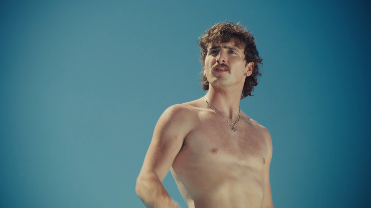 Benson Boone is sudsing up the screen, dunking on his haters, and serving summer thirst trap realness in his latest music video, Mr Electric Blue — and babes, it’s a campy, glitter-dusted serve.