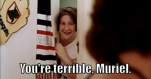 How do you describe 'Muriel's Wedding' to anyone? You don't. After you are done slapping them for not ever seeing it and after you go to Amazon.com and buy one of the 11 remaining copies ( there were 12, I just bought one), you sit them down, pull out your cassette of one of the best movies ever, dust off the ancient VHS player, and make them watch, well, a movie that cannot be described. Well it can, but try not to expectorate when you say Porpoise Spit.