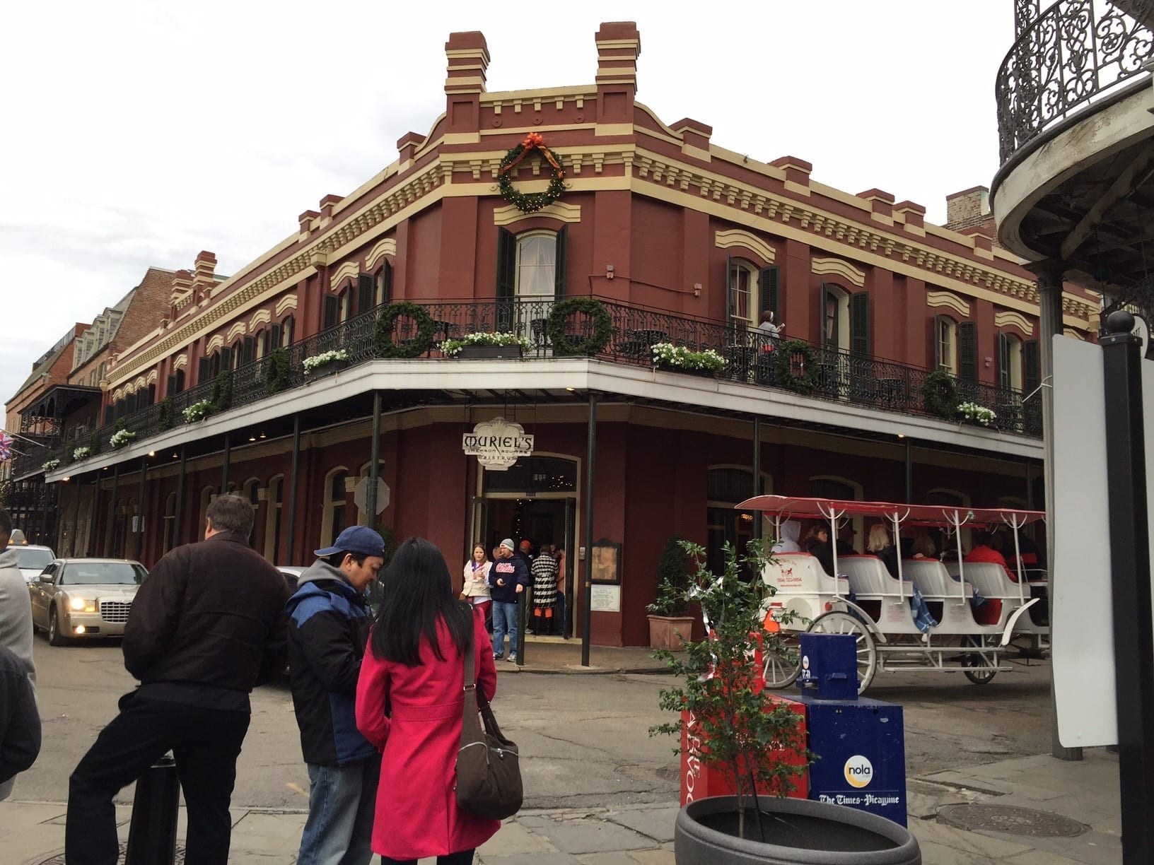 Muriel’s Restaurant – Corner of Jackson Square, St Ann and Chartres. Supposedly a haunted restaurant. Semi upscale. Check the menu out one time while walking around the Square.