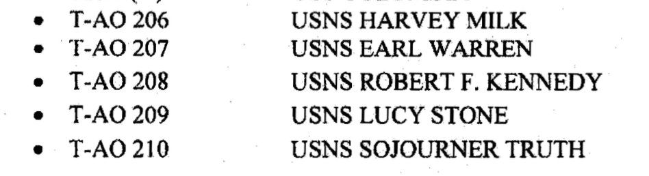 The July 14, 2016 notification, signed by Secretary of the Navy Ray Mabus, indicated he intended to name a planned Military Sealift Command fleet oiler USNS Harvey Milk (T-AO-206). The ship would be the second of the John Lewis-class oilers being built by General Dynamics NASSCO in San Diego, Calif.