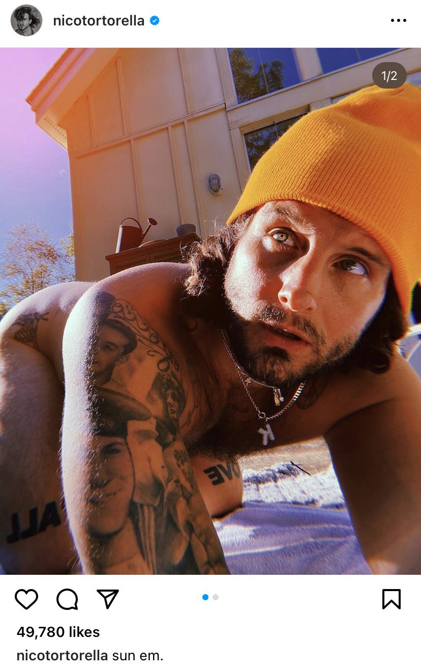 The blazing sun just got hotter with Nico Tortorella basking in it, and they just so happened to be naked with nothing but a vibrant orange beanie on…
