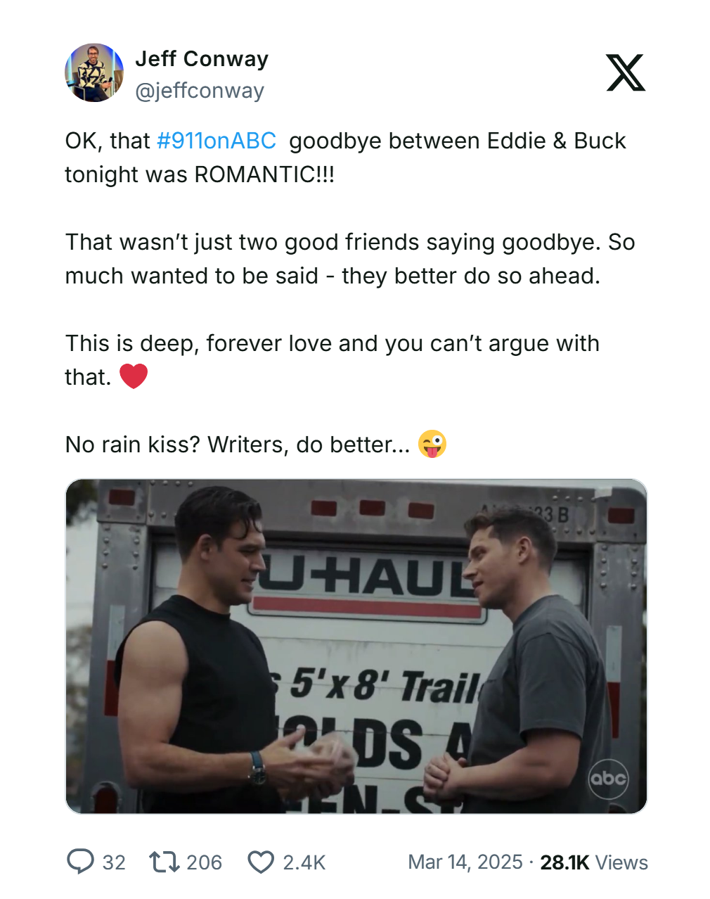 So, in case you missed it, the next time you see Eddie and Buck bumping into each other again? You know exactly what’s going on. And for the fandom? It’s just more fuel for the fire.