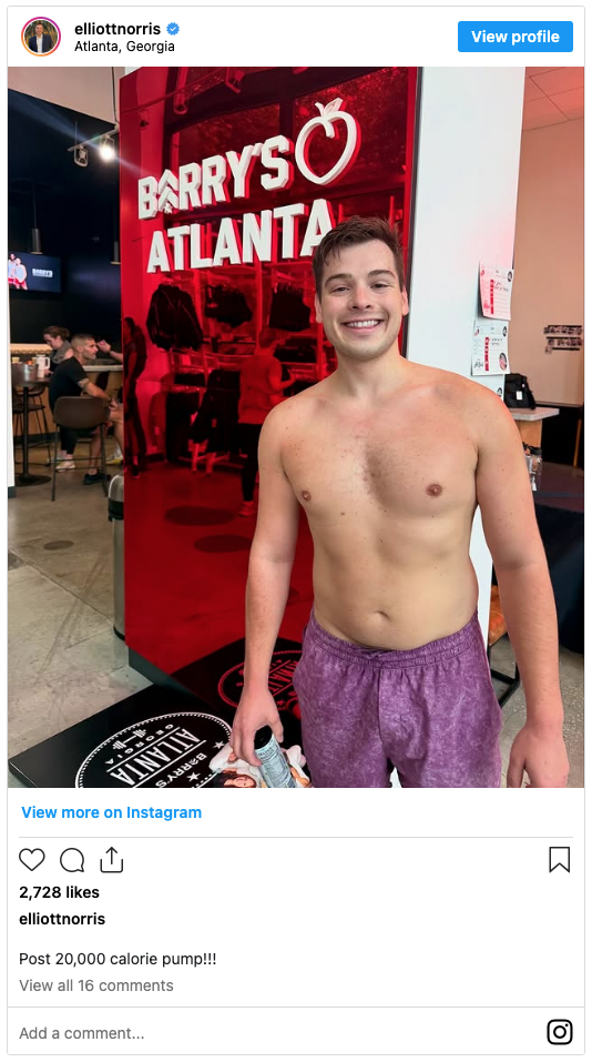 Elliott Norris threw down some calories at Barry’s in Atlanta: