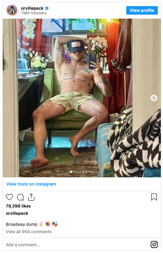 Sharing some favorite Instagrams from the week, beginning with country star Orville Peck, who offered a view of his manspread dressing room on Broadway at Cabaret.
