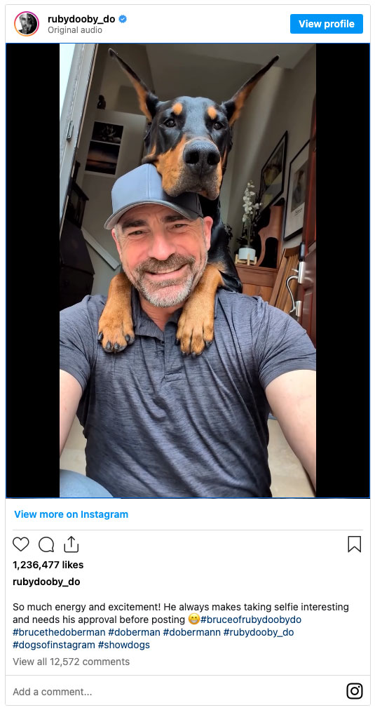 DoberBoy Bruce is a pro at taking selfies with his dad (click to play adorbs video):