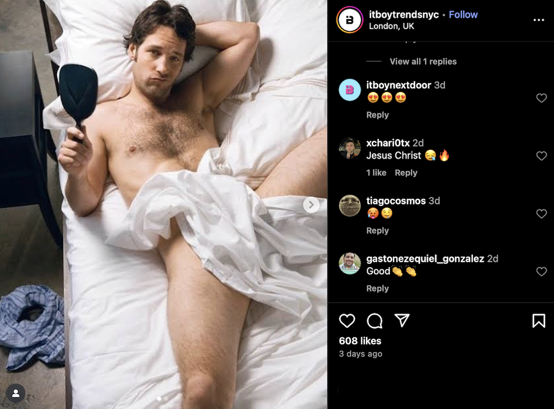 This was pre-Avengers, pre-global fame, pre-Internet’s Dad status. At the time, Paul was still mainly known for his boy-next-door roles and quick-witted charm—not for, well, being barely clothed on a bed with a sultry pout that made fans do a double-take. But there he was, smizing under the covers, showing off a toned physique we had no (okay, maybe a little) idea he had been hiding beneath all those shirts and flannel button-ups.