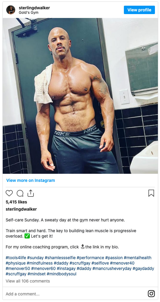 Sterling Walker spent a sweaty day at the gym for a self-care Sunday: