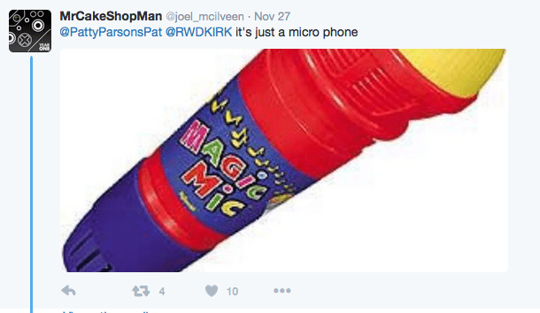 Now a mom that knows how to take a pic and tweet it out with a caption … she sounds like a pretty talented woman.  Someone worldly.  But apparently not worldly enough to know boys like their toys.