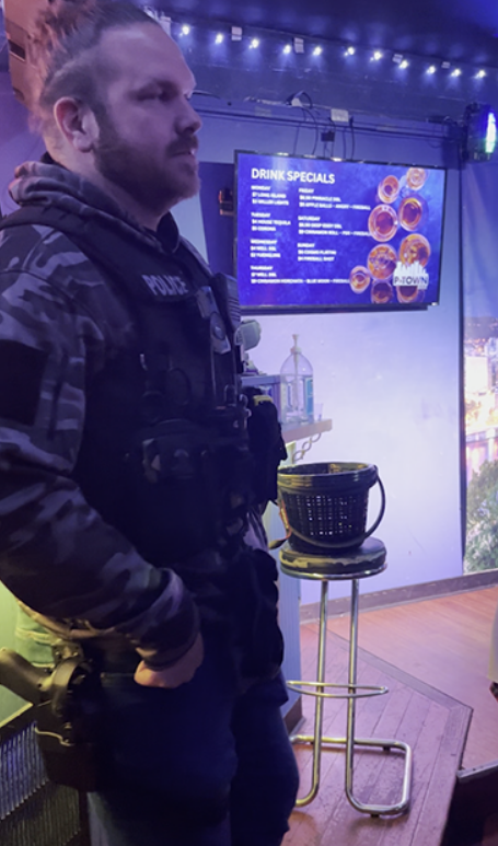 P Town Bar’s security guard Corey Dunbar commended the staff, saying they “ensured patrons’ safety and nerves during the process” because “many people were shaken up.” Understandably so. Nothing says “welcome to the party” like militarized officers staring down drag performers for being too fabulous.
