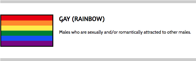 Apparently the rainbow flag has been given to the gay male sexual orientation? I am not sure that this is a world wide belief and I'm still under the impression that the rainbow flag is more of a blanket covering/representing all that is not the binary, heterosexual, normal, cookie cutter, straight laced (you get the picture) way of living, loving, and thinking.
