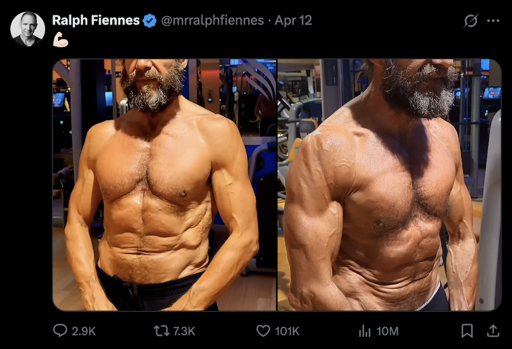 Under the guidance of personal trainer Dan Avasilcai, Fiennes took on a disciplined five-month program that involved progressive weight training, regular running sessions, and a steady diet of lean protein, complex carbs, and vegetables — basically, he ate like a Greek hero and trained like one too.