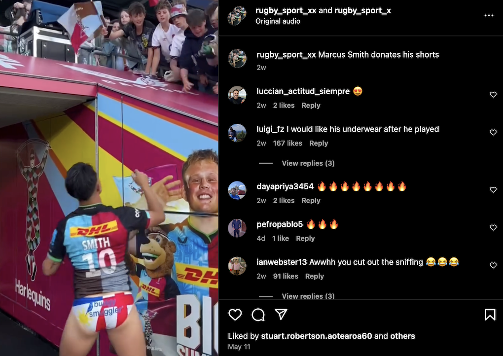 Whether it’s tradition, cheeky team spirit, or just a fun way to show fan appreciation, it seems rugby players are out here raising the bar—and lowering their waistbands—for fan engagement.