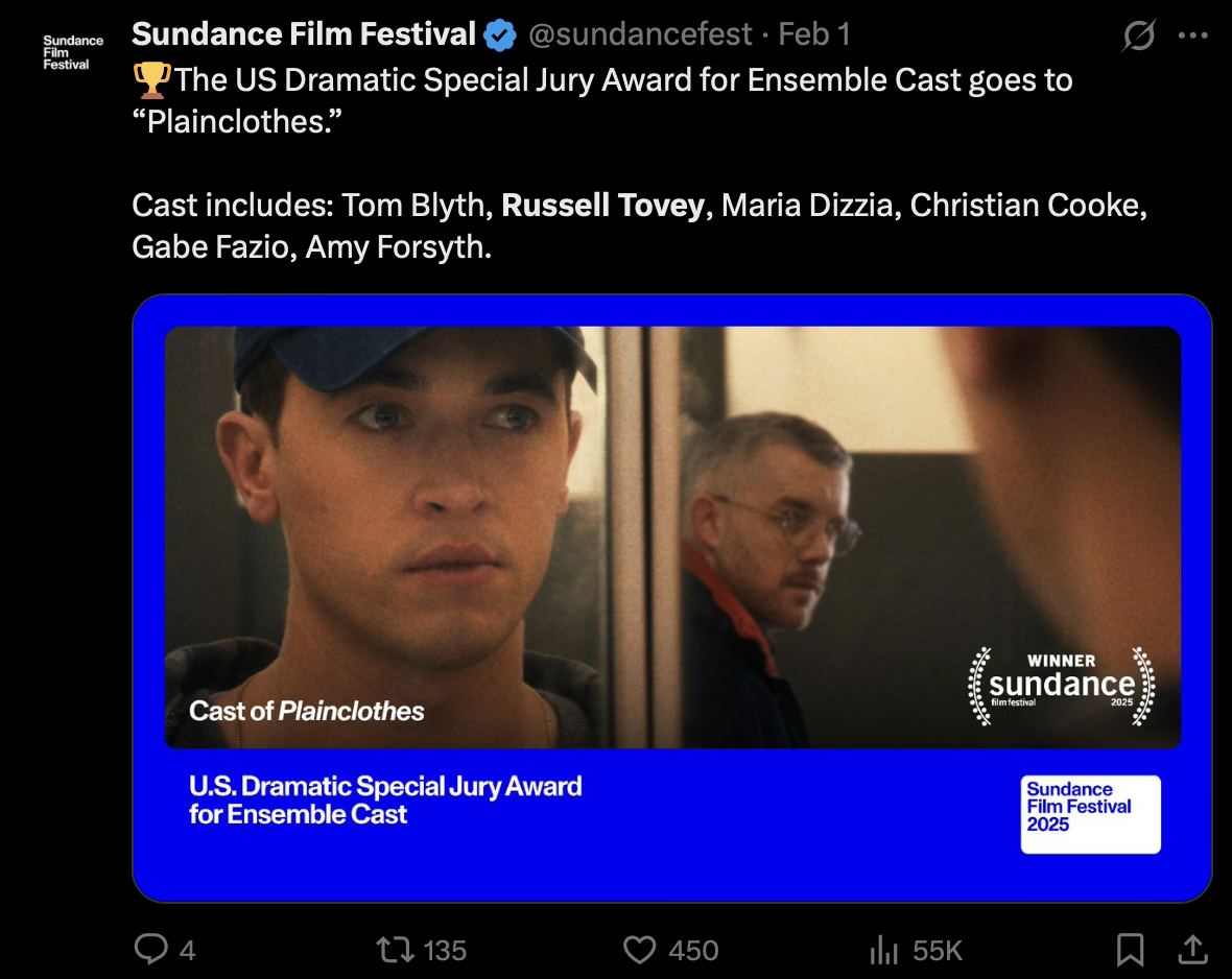 That care and mindfulness have followed Tovey throughout his career. In the film Plainclothes, which features some deeply raw and emotional moments, both he and his co-star took time to acknowledge the important role their intimacy coordinator played in helping create a safe, trusting environment.