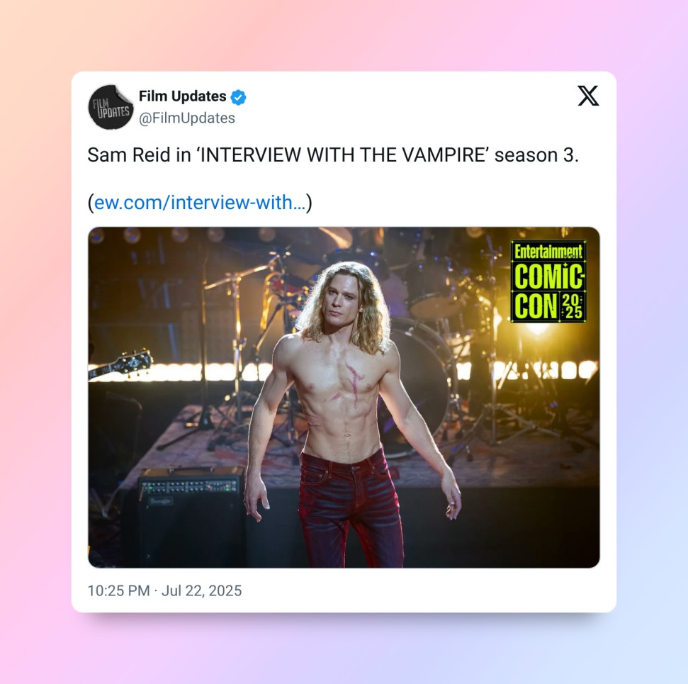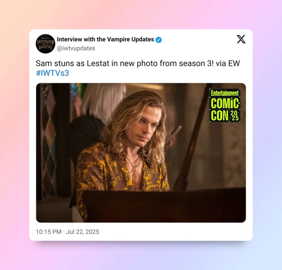 With these two contrasting sides of Lestat—one filled with energy, chaos, and rock ‘n’ roll, the other introspective and filled with musical soul—Sam Reid is giving fans the complete Lestat experience. From shirtless, electrifying performances to quieter moments at the piano, Season 3 promises a deeper, more complex Lestat than ever before.