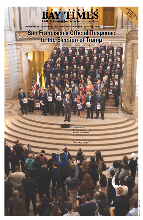 FURTHER RESOLVED, That we condemn all hate crimes and hate speech perpetrated in this election’s wake. That although the United States will soon have a President who has demonstrated a lack of respect for the values we hold in the highest regard in San Francisco, it cannot change who we are, and it will never change our values. We argue, we campaign, we debate vigorously within San Francisco, but on these points we are 100 percent united. We will fight discrimination and recklessness in all its forms. We are one City. And we will move forward together. – sfbaytimes.com