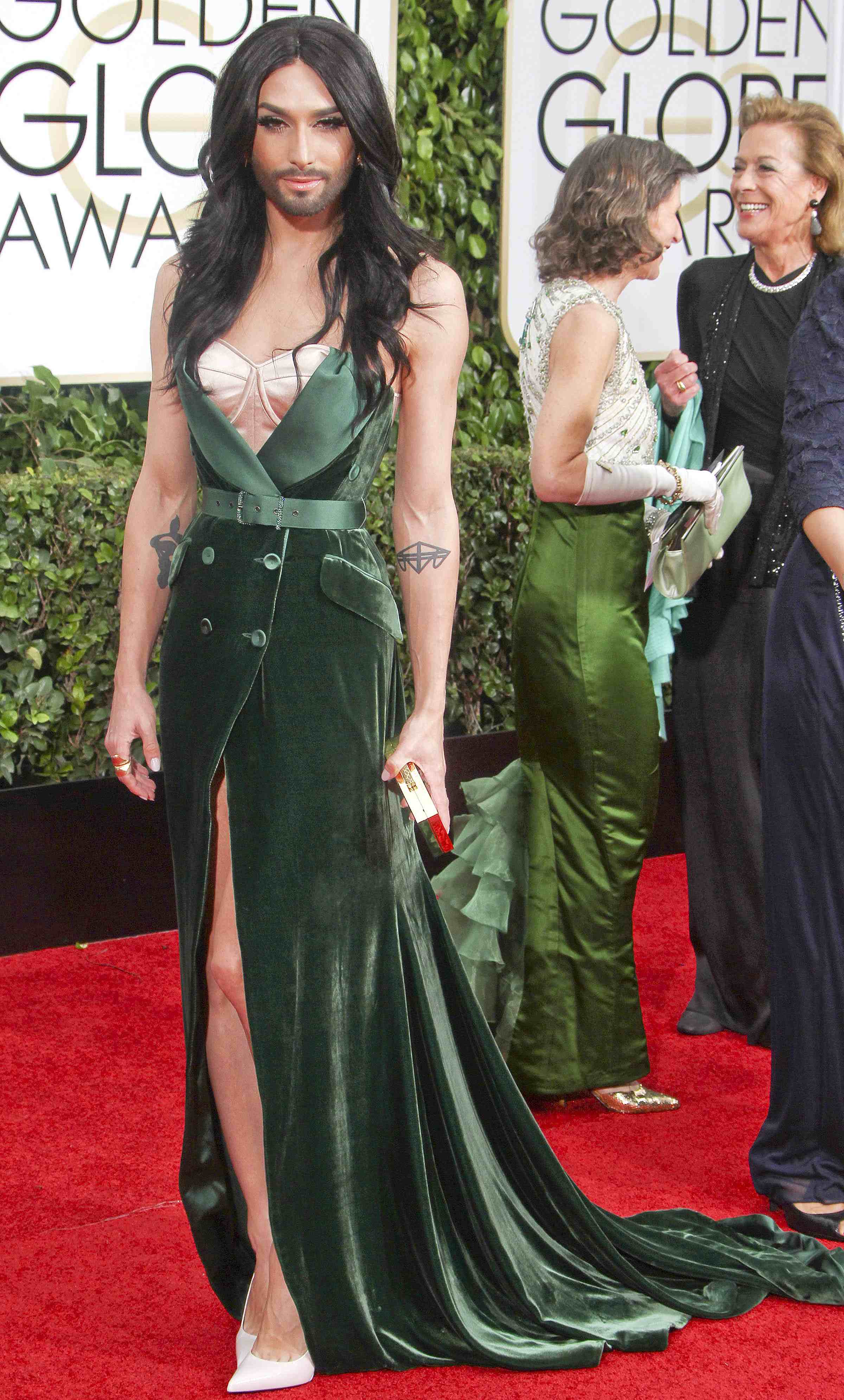 The Pride / Rainbow ribbon is beautiful. There's no denying that, but what about the rest of her attire? Here's her inspiration, Conchita Wurst, winner of the Eurovision Song Contest 2014 as Austria's entrant with the song "Rise Like a Phoenix".