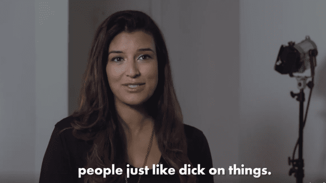 Haha! That girl is funny, especially her last line in the video: "It's surprising and very delightful that people just like dick on things!" …Hahaha!!!