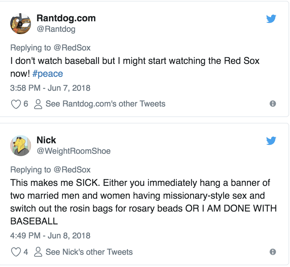 h/t: https://www.advocate.com/sports/2018/6/11/red-sox-fans-triggered-over-lgbt-pride-call-straight-night