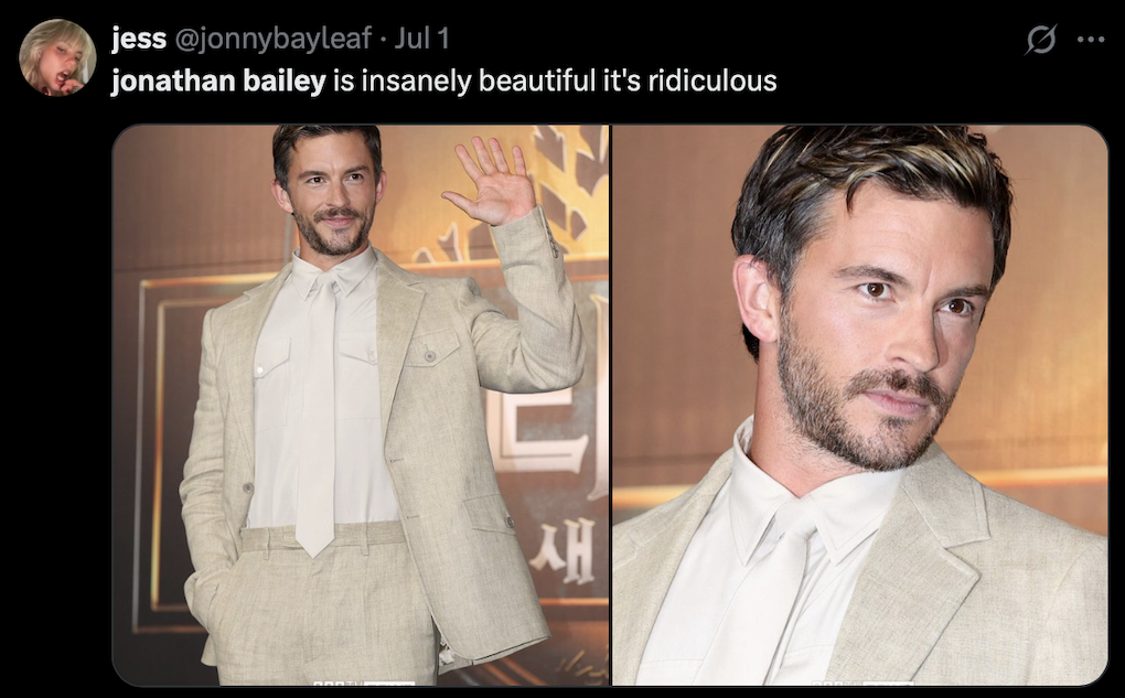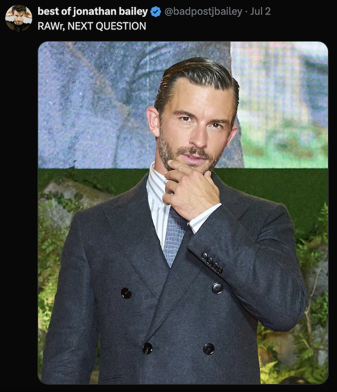 Naturally, the internet imploded. One fan summed it up perfectly: “Last week it was the short shorts. This week it’s the clarinet. Next week? He’ll probably invent time travel.” Another wrote, “Jonathan Bailey is living in his whimsical hot nerd era and I want to live there too.”