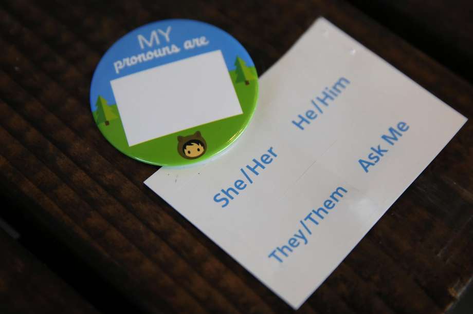 Walters, who identifies as genderqueer and prefers to be called “they” rather than “he” or “she,” was one of countless people at the conference who wore pronoun badges this week — a first for Dreamforce and an unusual step on the tech-conference circuit that left many scratching their heads, wondering why the buttons were needed in the first place.