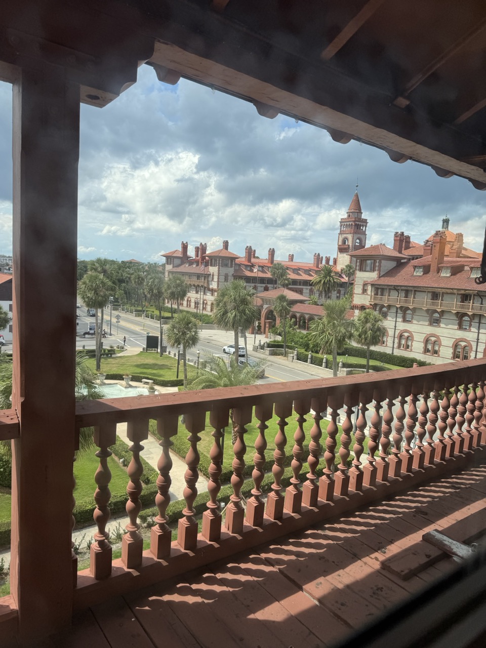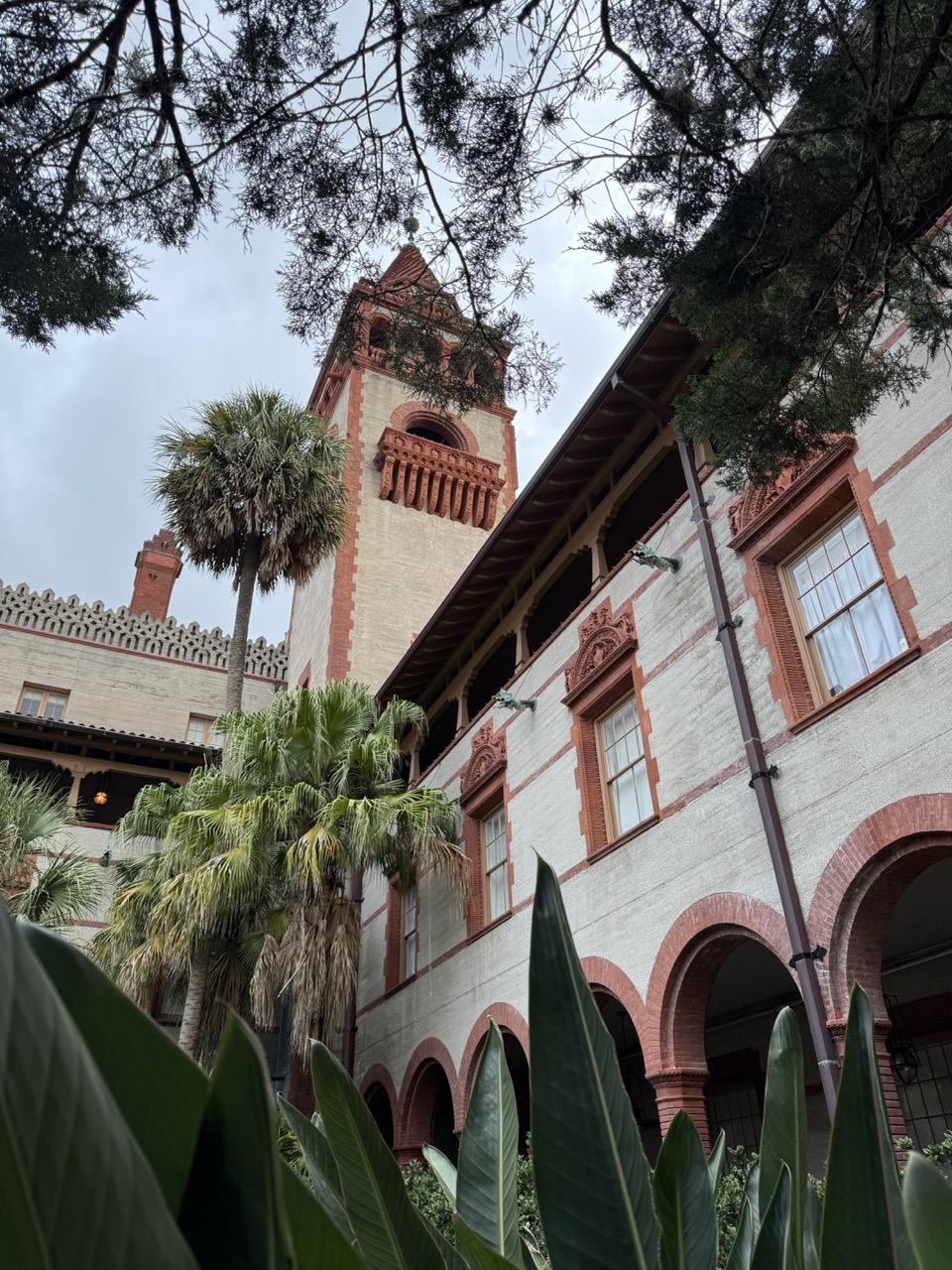 The room was so comfortable, the robe was lush and wrapped around you, not letting you leave. The view outside my window was one of the museum’s garden area in the center of town, which was across the street from Flagler College, also part of my view.