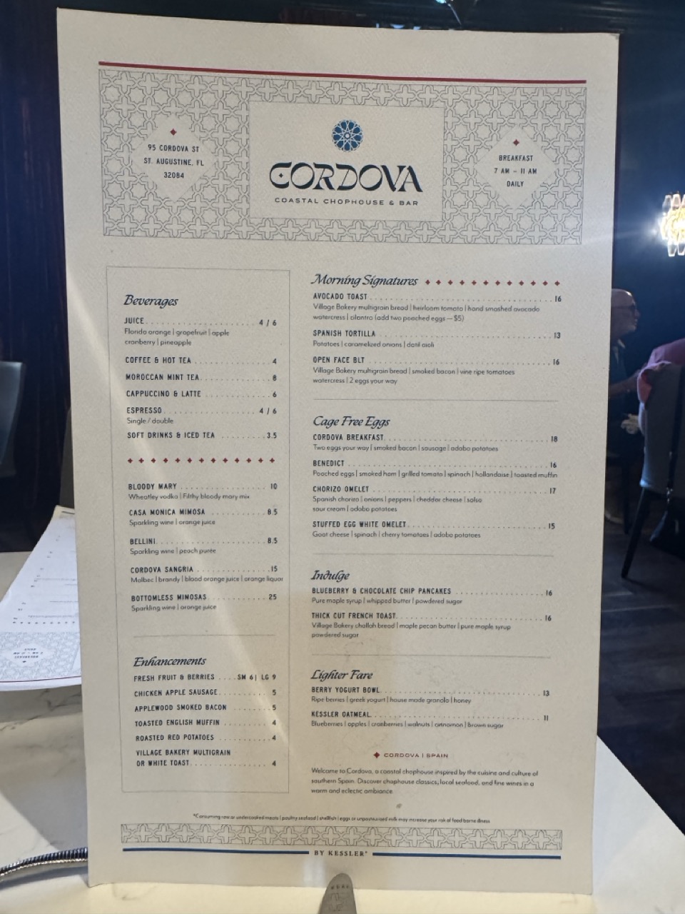 Rooftop dining with live music and an impressive wine list. You could walk here from downtown but we enjoyed the 4-minute ride and then the elevator up to the top floor. Many of the other places we went to were in the heart of St. Augustine as it is such a wonderful walkable city. The Cellar Upstairs was slightly removed from downtown so it felt like a whole new experience.