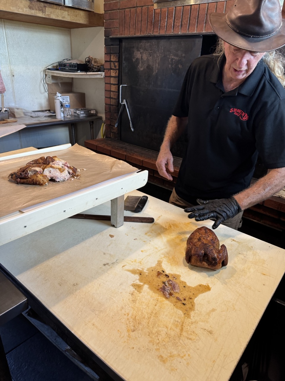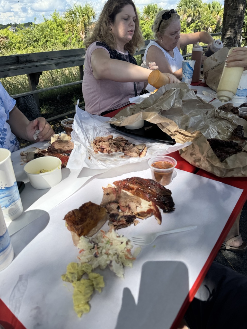 Fresh, slow-smoked meats prepared daily. Rustic, hearty, and unforgettable.You can forget about eating inside as the business is petite but they flavors are massive. We saw the pit master carve delectable delights, wrap them in butcher paper, shove them in a bag, and we unwrapped all that as well as cracked open containers of sides at the picnic table outside. Sticky goey saucey awesomeness. We all had our favorites.